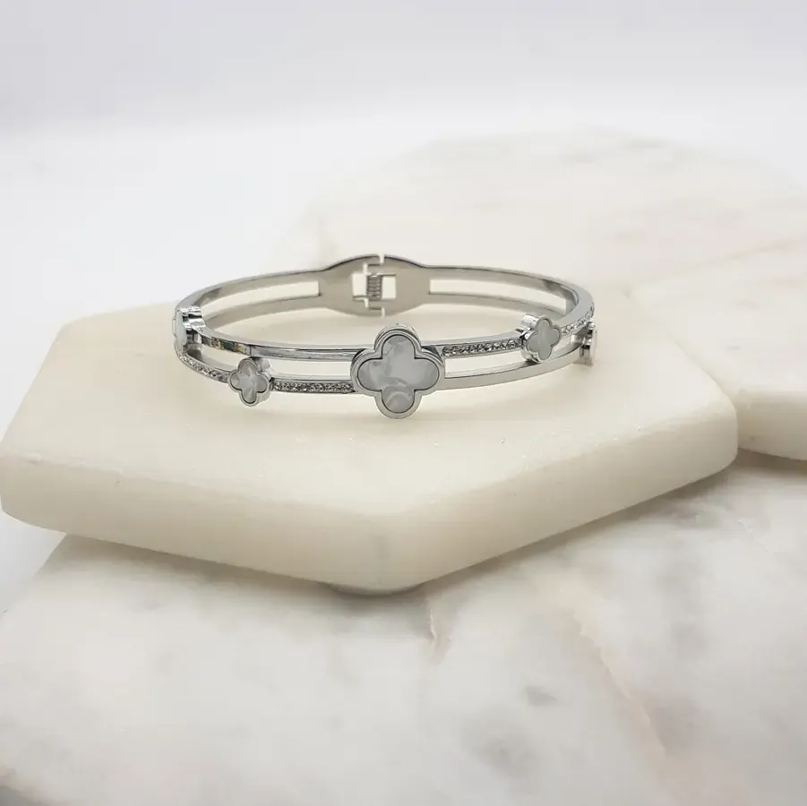 Bangle Stainless Steel w/Silver Clover