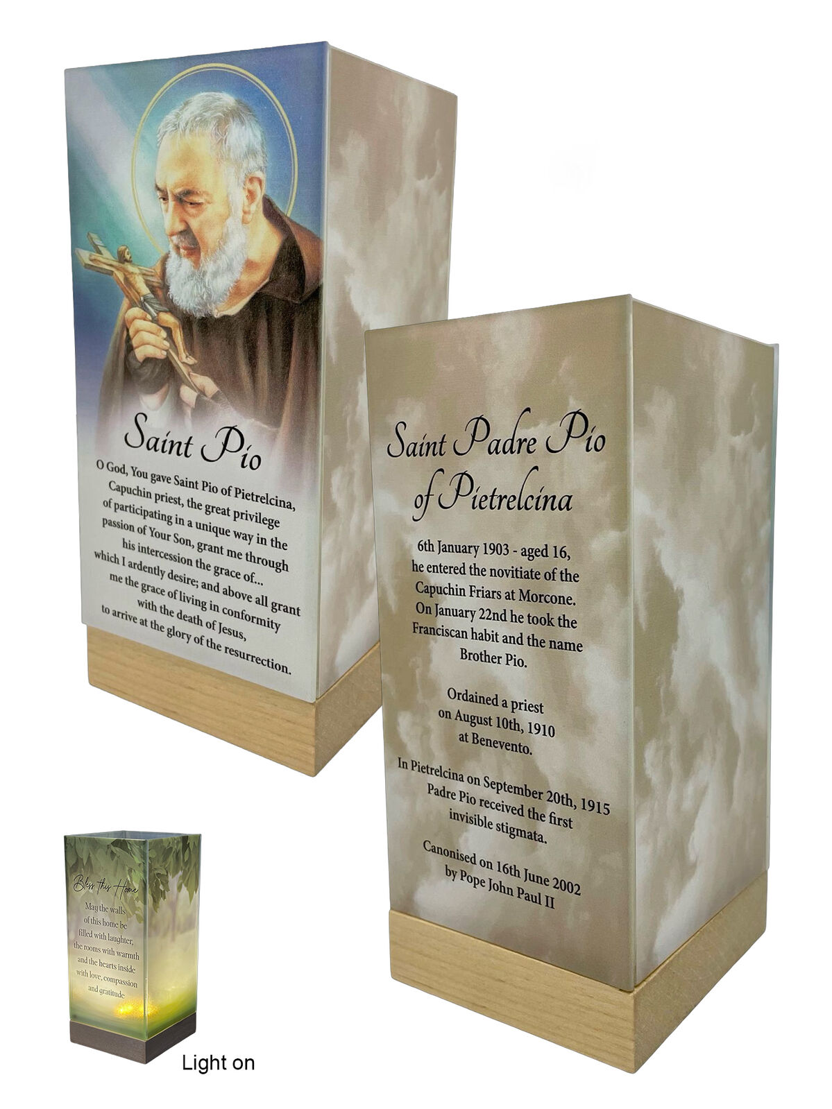 A beautiful LED glass lamp with wood base, features timer with 6 hours on and 18 hours off and measures 80 x 80 x 155mm high.