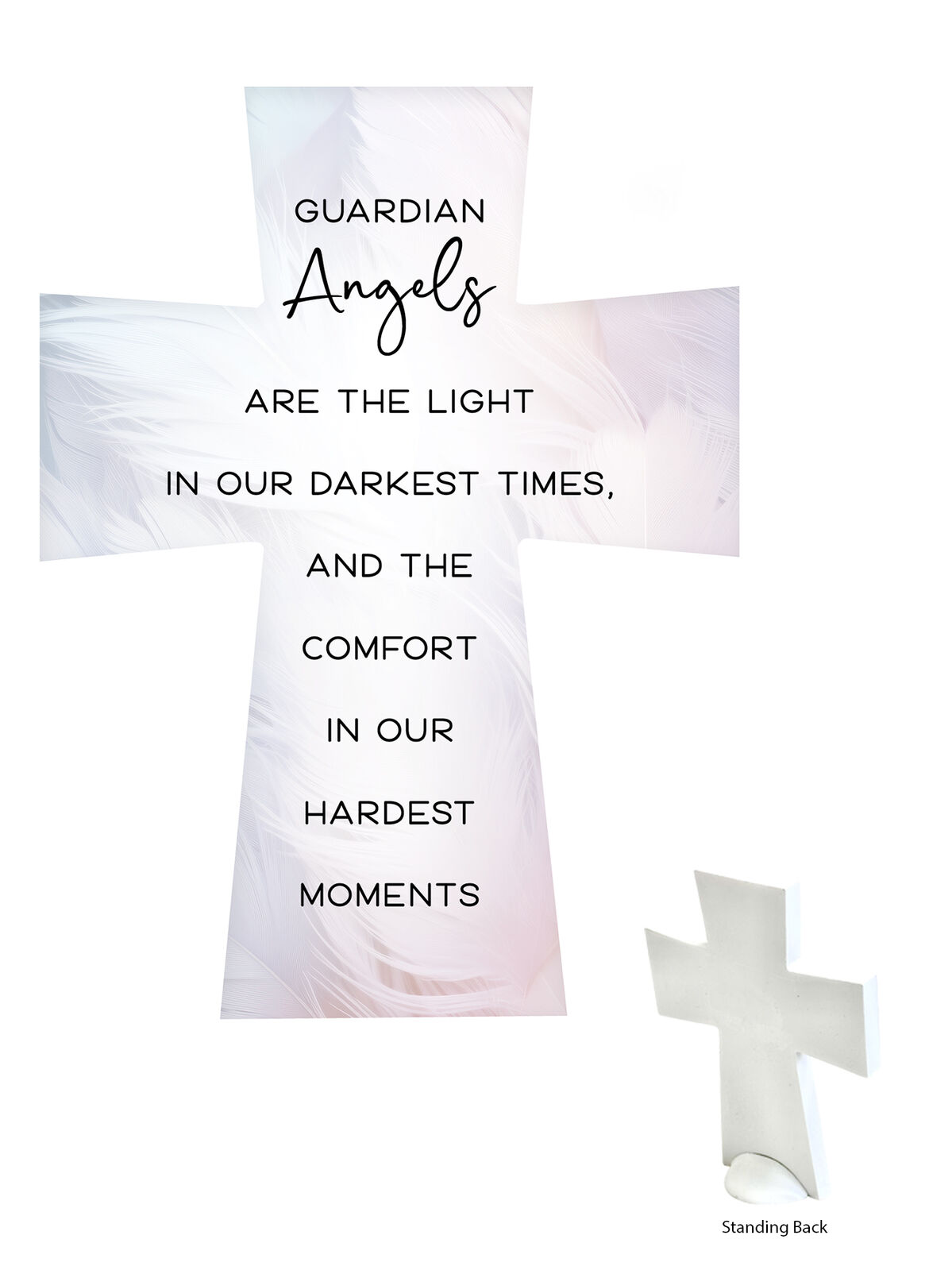 A beautiful standing ceramic cross with inspirational verse inscription.