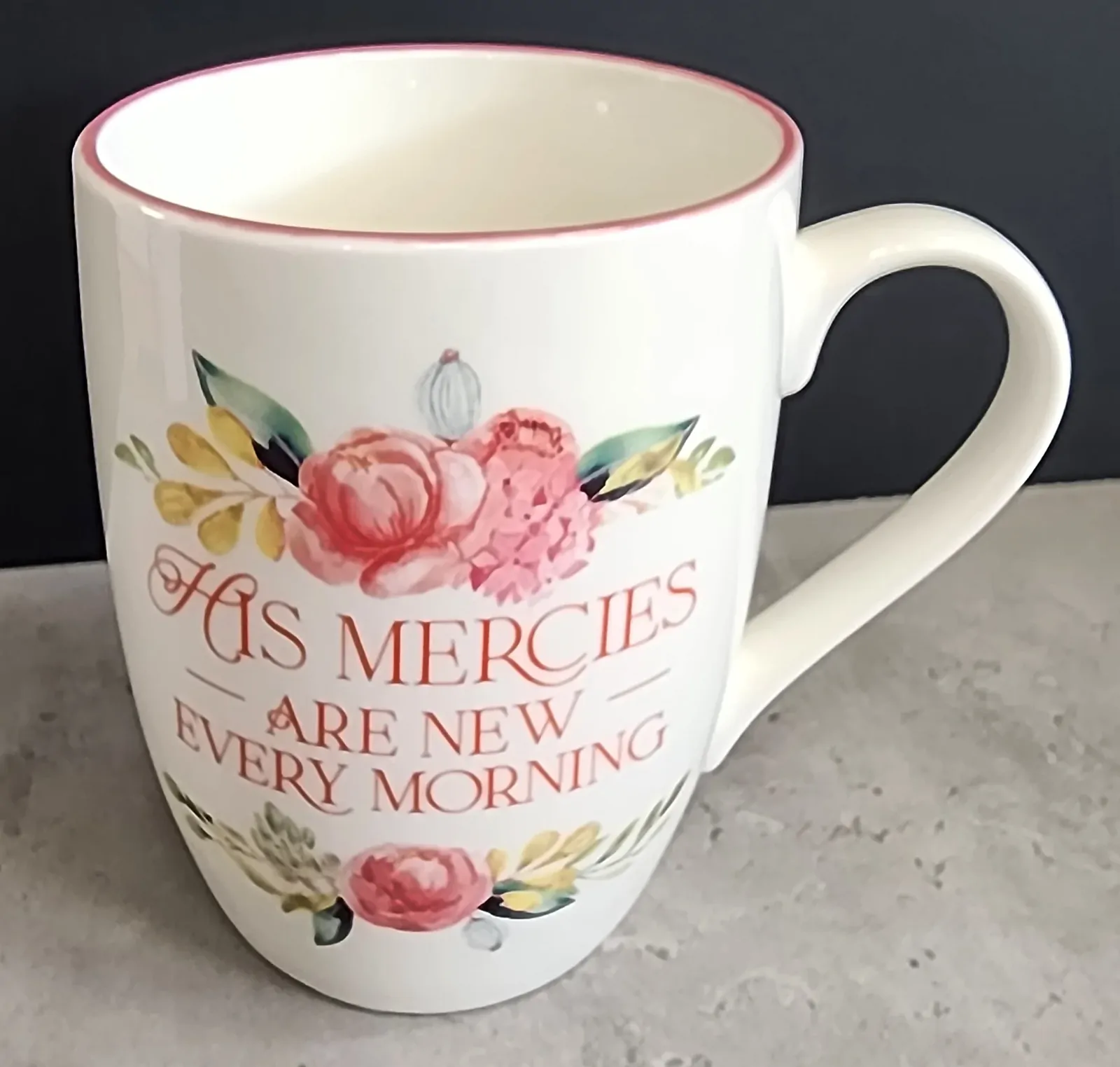 Ceramic Mug: Mercies are New, Lam. 3:22-23, Teal Floral