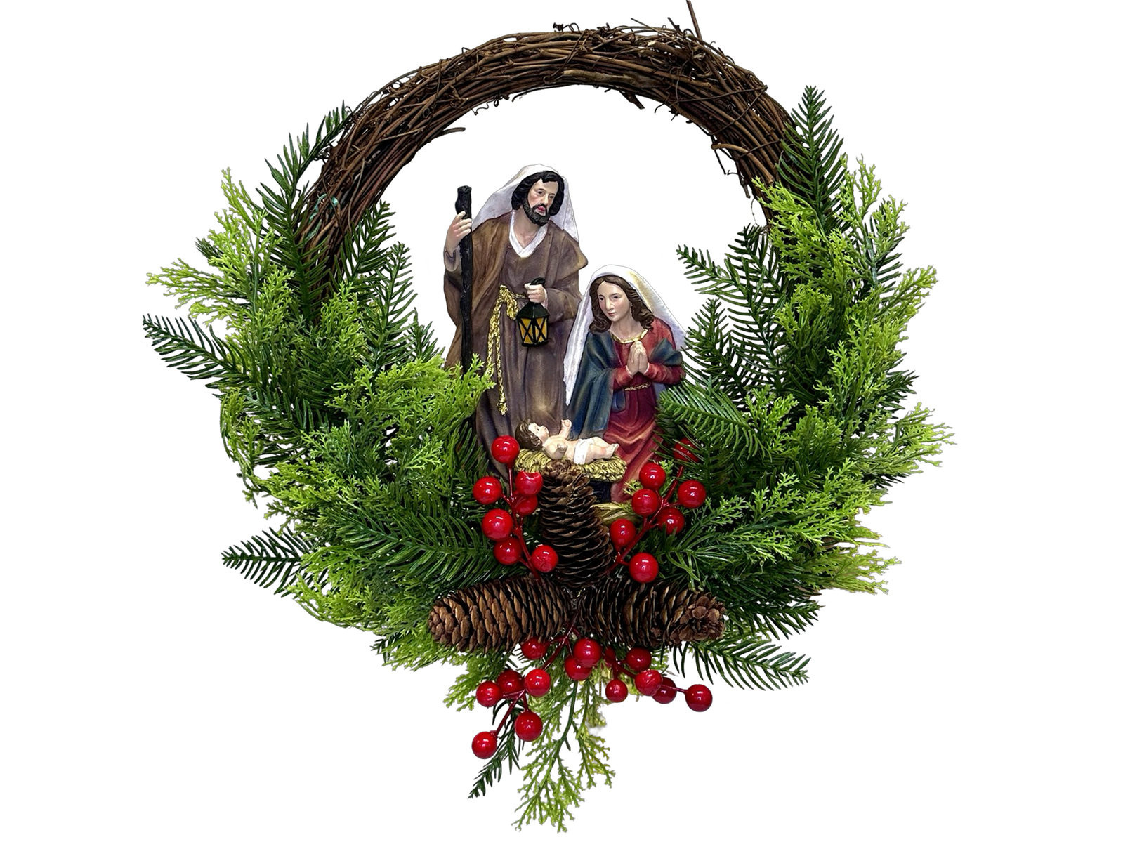Christmas Wreath with Holy Family Plaque