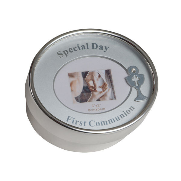 A beautiful First Communion jewellery box with room for a 2 x 3" photo.