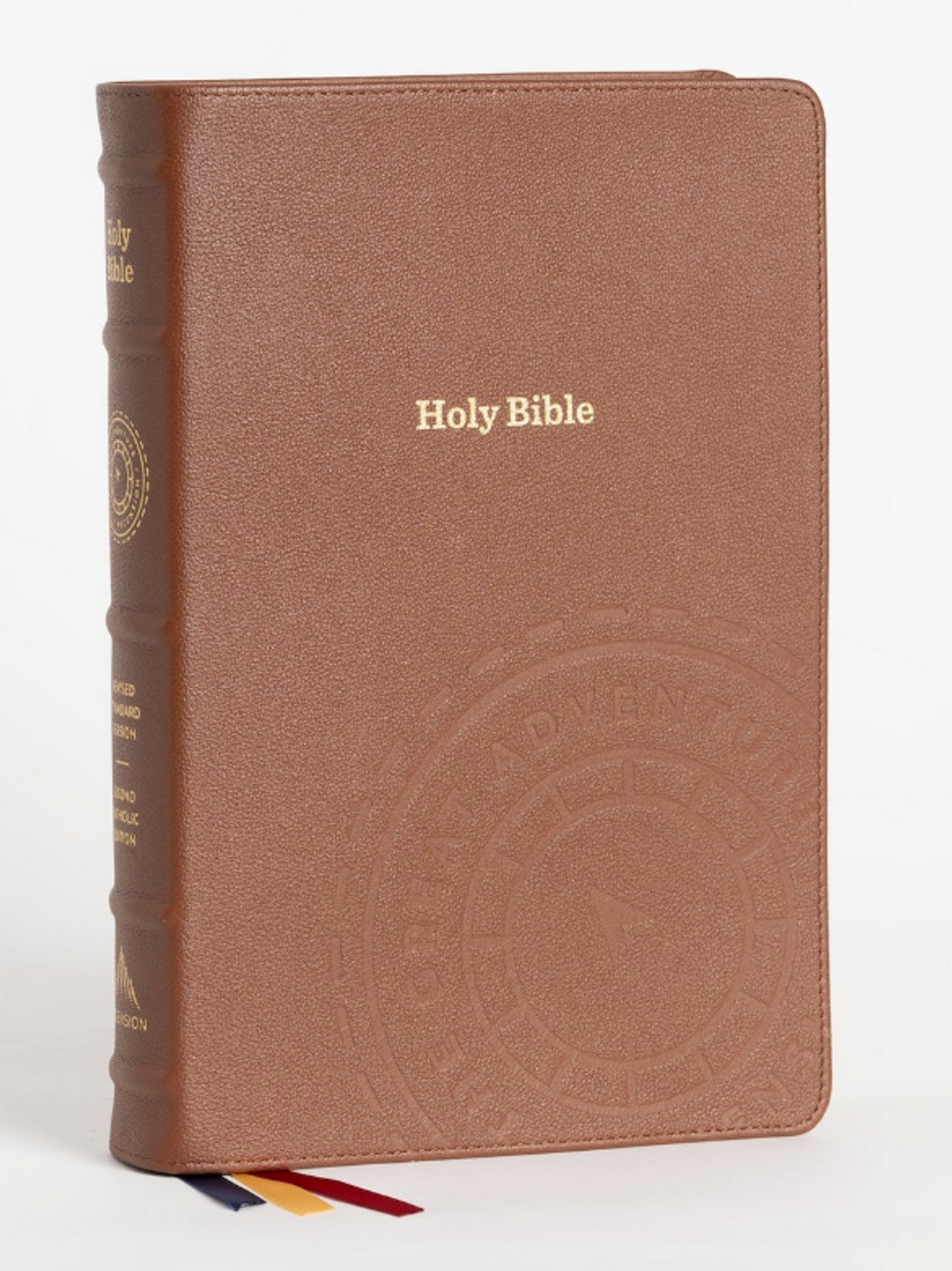 An elegant Bible made out of the highest-quality materials, this version features a beautiful brown goatskin leather cover with calfskin liner, perimeter stitching, edge-lined binding, raised spine hubs, and gilt edges. It transforms the life-changing features of The Great Adventure Catholic Bible into a treasured biblical experience that makes the beauty of the Word of God tangible.
