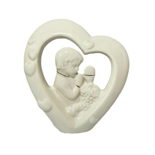 A beautiful ceramic praying boy heart frame measuing 10.5 x 5 x 12.7cm.