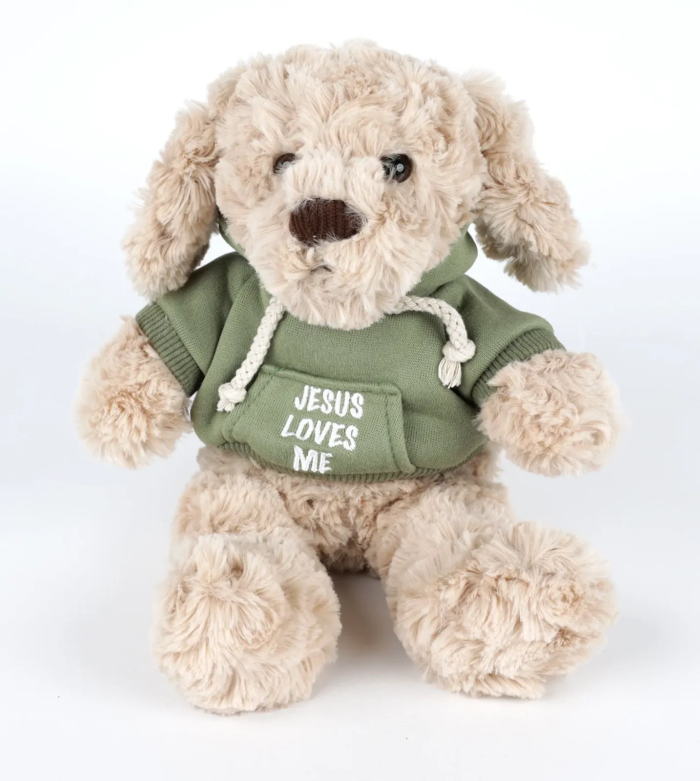 Plush Toy: Jesus Loves Me Dog, Green Hoodie