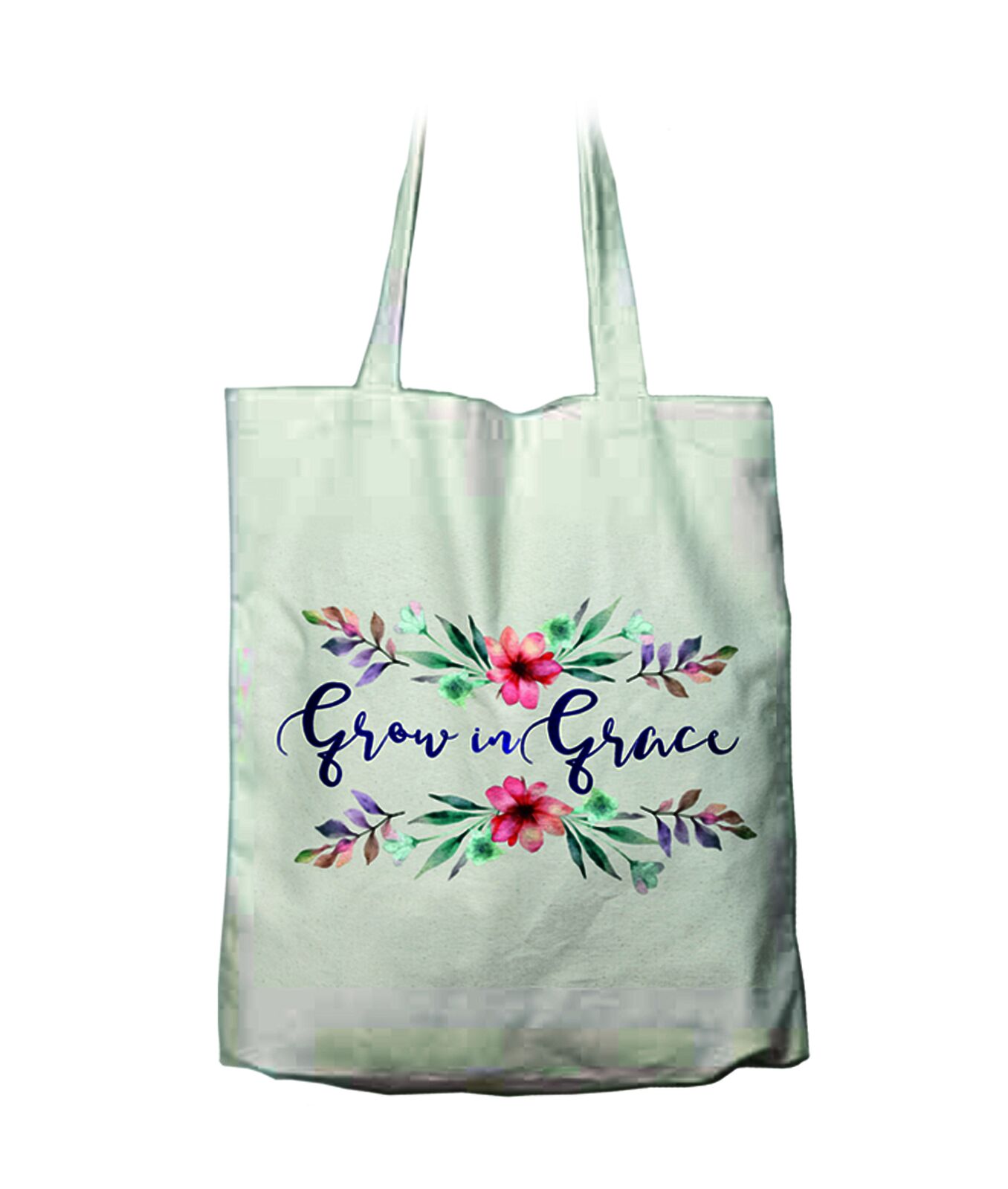 A beautiful canvas bag with inscription, measuring 37 x 43.5 cm.